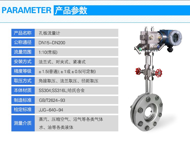 孔板流量計應用范圍廣,全部單相流皆可測量,部分混相流亦可應用。