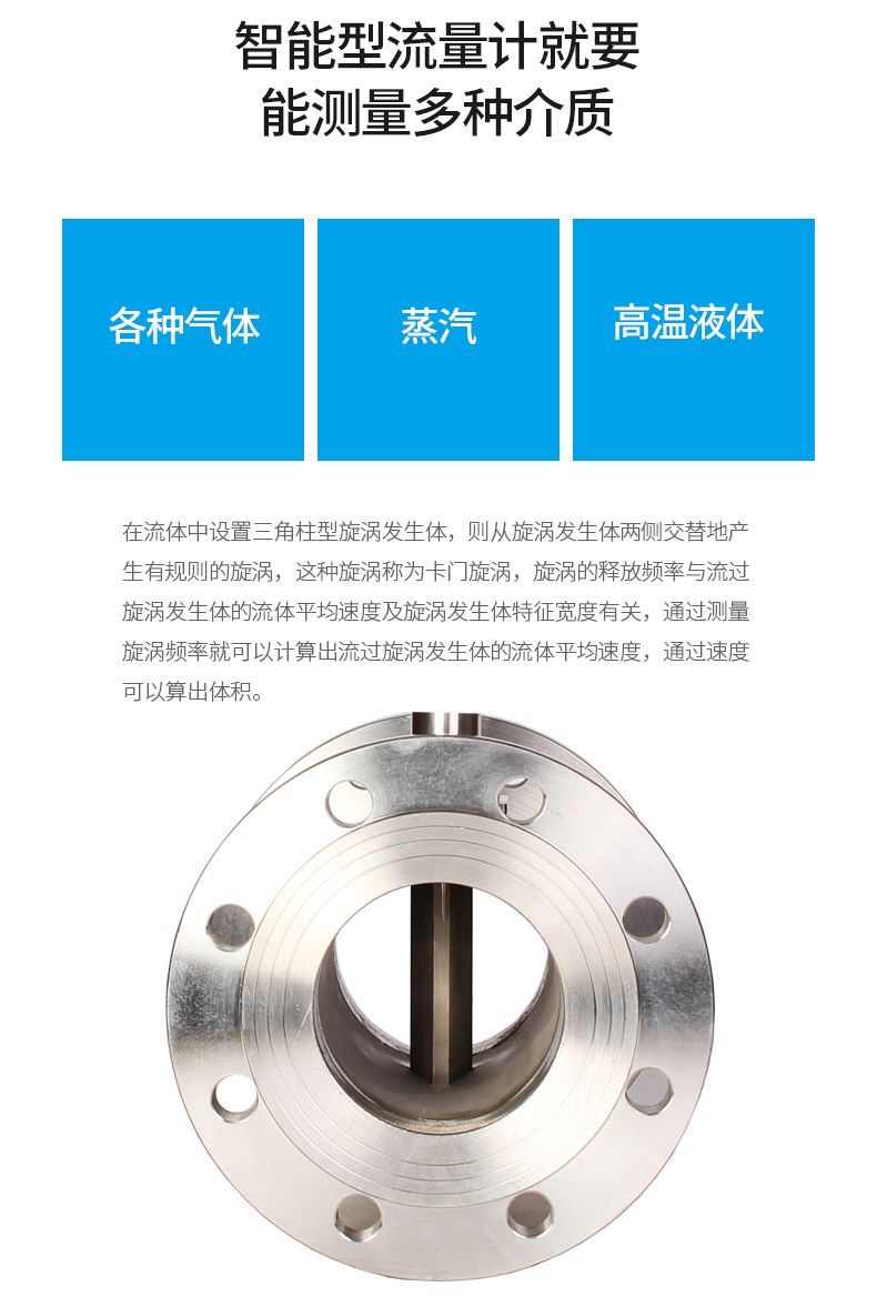 系列蒸汽渦街流量計主要用于工業(yè)管道介質流體的流量測量,如氣體(天然氣/壓縮空氣)、液體、蒸汽等多種介質。其特點是壓力損失小,量程范圍大,精度高,在測量工況體積流量時幾乎不受流體密度、壓力、溫度、粘度等參數(shù)的影響。無可動機械零件,因此可靠性高,維護量小。配備溫度、壓力傳感器可測量標況體積流量和質量流量。